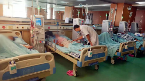 邓奶奶每次来做透析治疗对医护人员都非常客气,从来不觉得为她所做的医疗护理是应该的,总觉得是麻烦大家了。医务人员凑近耳朵跟她说话,她总是说“谢谢”!