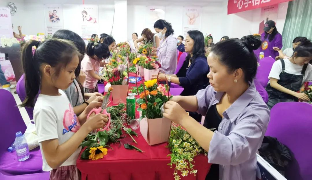 在专业花艺师的指导下,现场女性们以插花创作共度温馨时光。粉色的康乃馨与洁白的满天星在指间流转,每位参与者都精心构思着独一无二的节日花礼。花香弥漫中,大家分享创作心得,这场融合花艺美学与情感交流的特别体验,让母亲节的祝福以更优雅的方式传递。